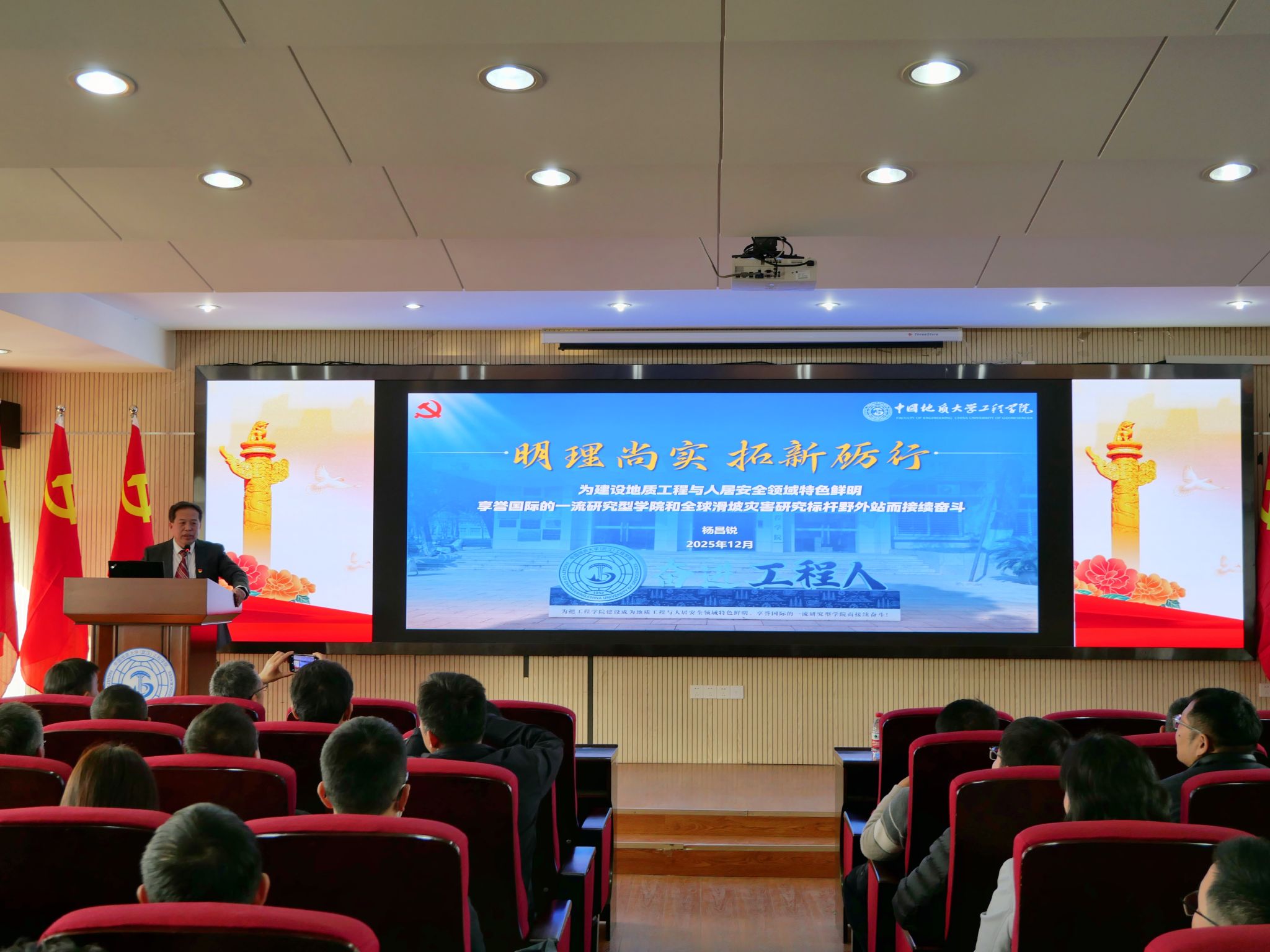 2025年12月11日,学院召开中共中国地质大学(武汉)后入视频 委员会第五次党员大会,党委书记杨昌锐同志代表第四届党委会作题为《明理尚实 拓新砺行 为建设地质工程与人居安全领域特色鲜明、享誉国际的一流研究型学院和全球滑坡灾害研究标杆野外站而接续奋斗》工作报告